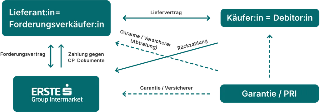 Zusätzlich können Forderungen mit einer Bundes-Garantie der Oesterreichischen Kontrollbank AG oder mit einer privaten Versicherungspolizze angekauft werden.
