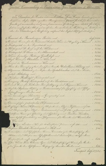 Die Einlagensummen bei der Sparkasse steigen Jahr um Jahr, ebenso die Zahl der Sparerinnen und Sparer. Mit den Gewinnen steigen auch die verfügbaren Überschüsse stark an, von denen regelmäßig an karitative Organisationen und für kulturelle Zwecke gespendet wird. Bedeutende Summen gehen etwa an das Spital der Barmherzigen Brüder, den Frauen-Erwerbs-Verein und die Gesellschaft für Musikfreunde.